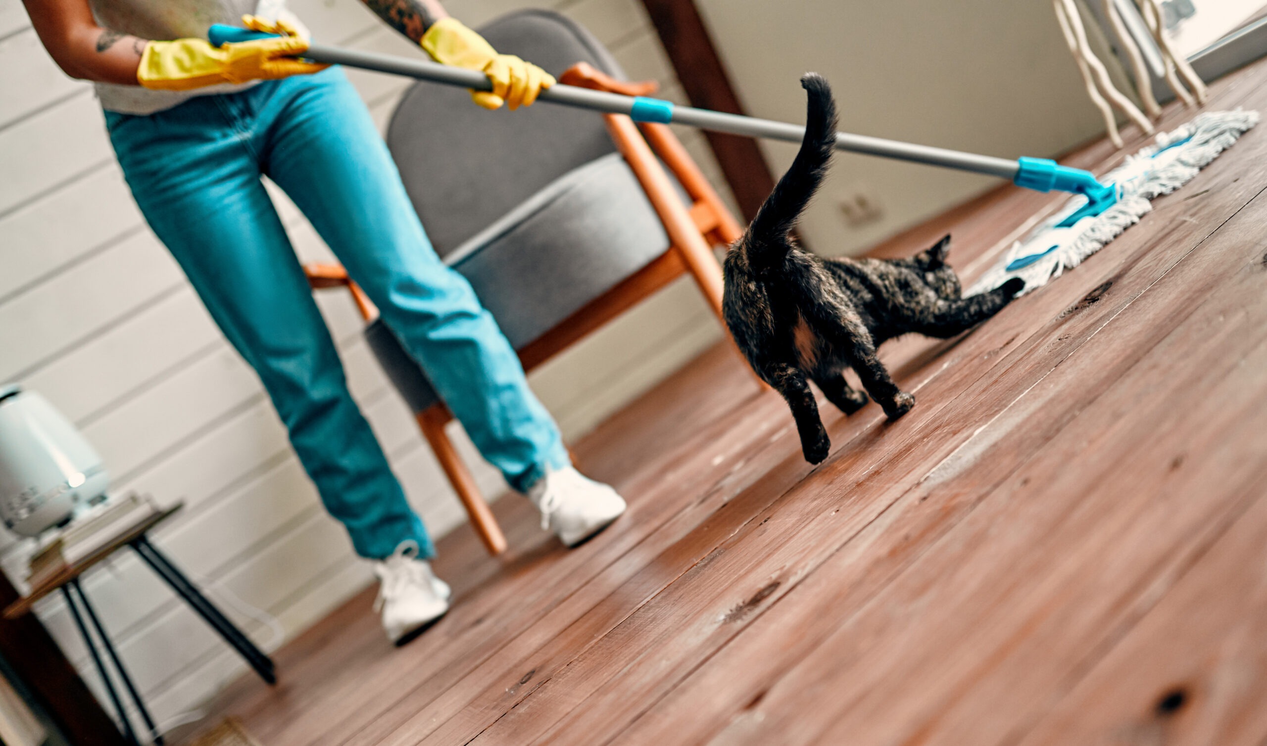 Katzen sind Meister im Ablecken – auch ihrer Pfoten. Was du beim Putzen auf Böden, Möbeln oder Spielzeug hinterlässt, kann so schnell in den Körper gelangen. Deshalb: Finger weg von stark duftenden oder chemischen Reinigern.