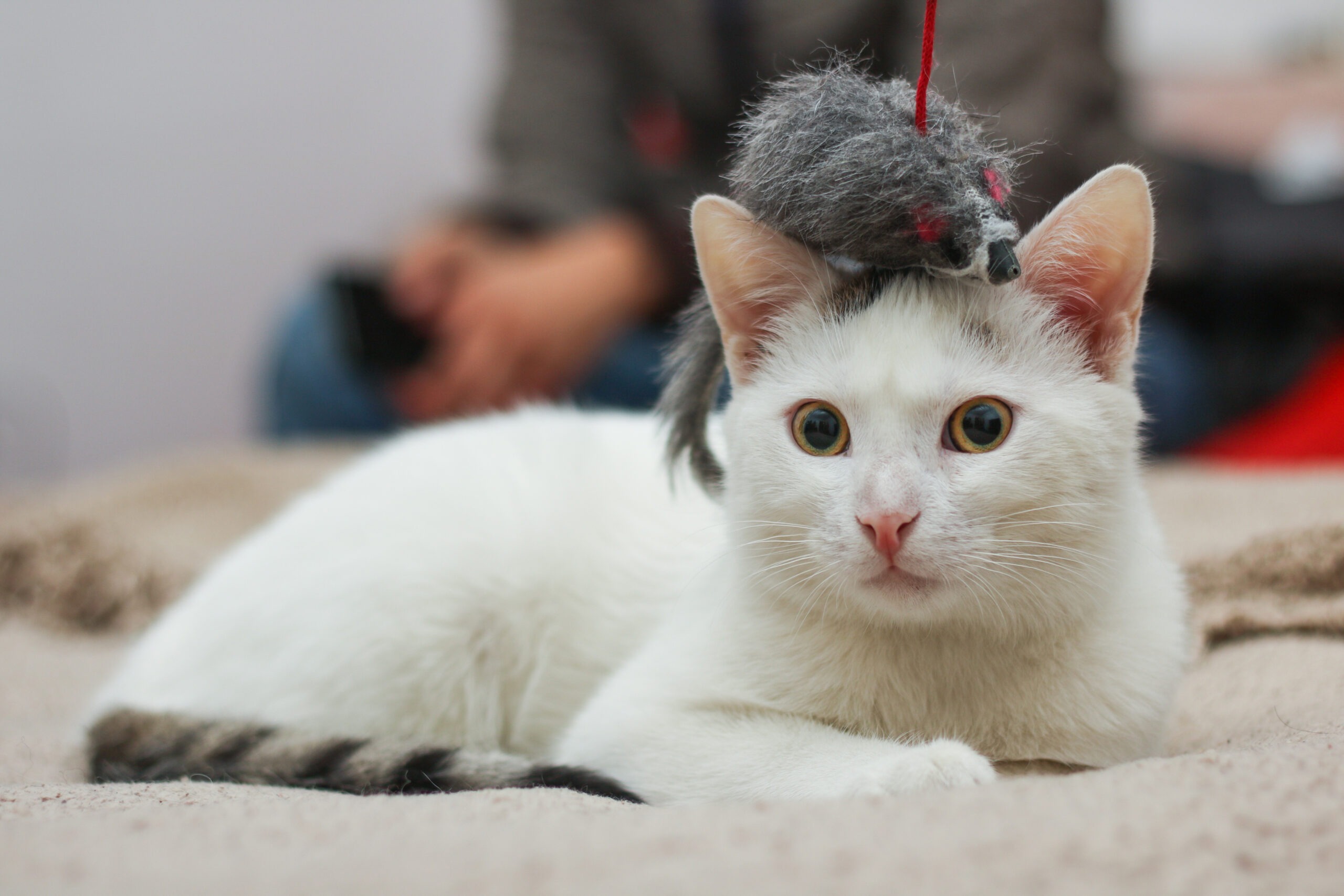 • Fixierender Blick: Ein intensives Starren ist ein Zeichen von Konzentration. Vielleicht beobachtet Deine Katze ein Spielzeug oder einen potenziellen „Feind“ – zum Beispiel eine Fliege an der Wand.